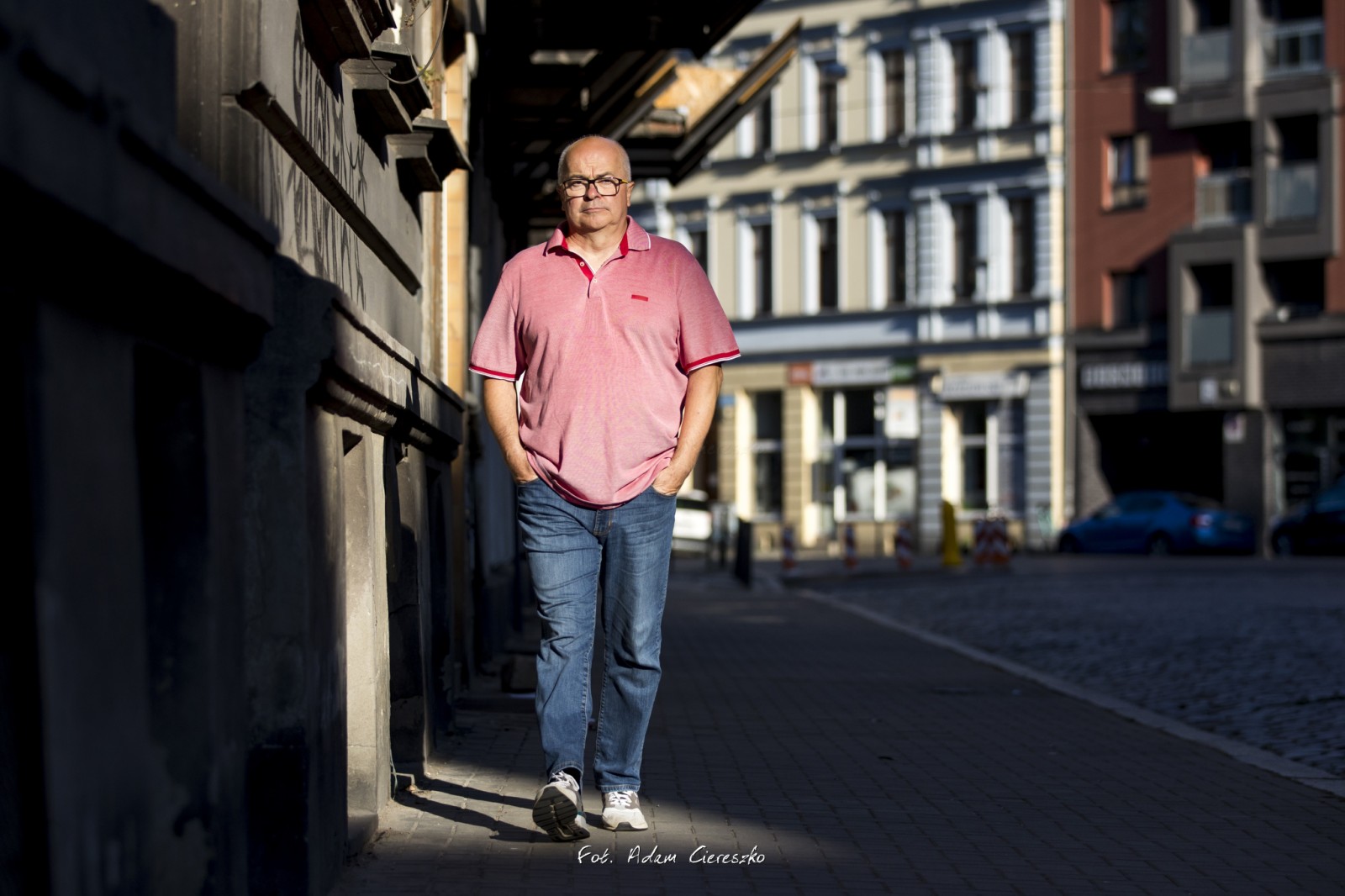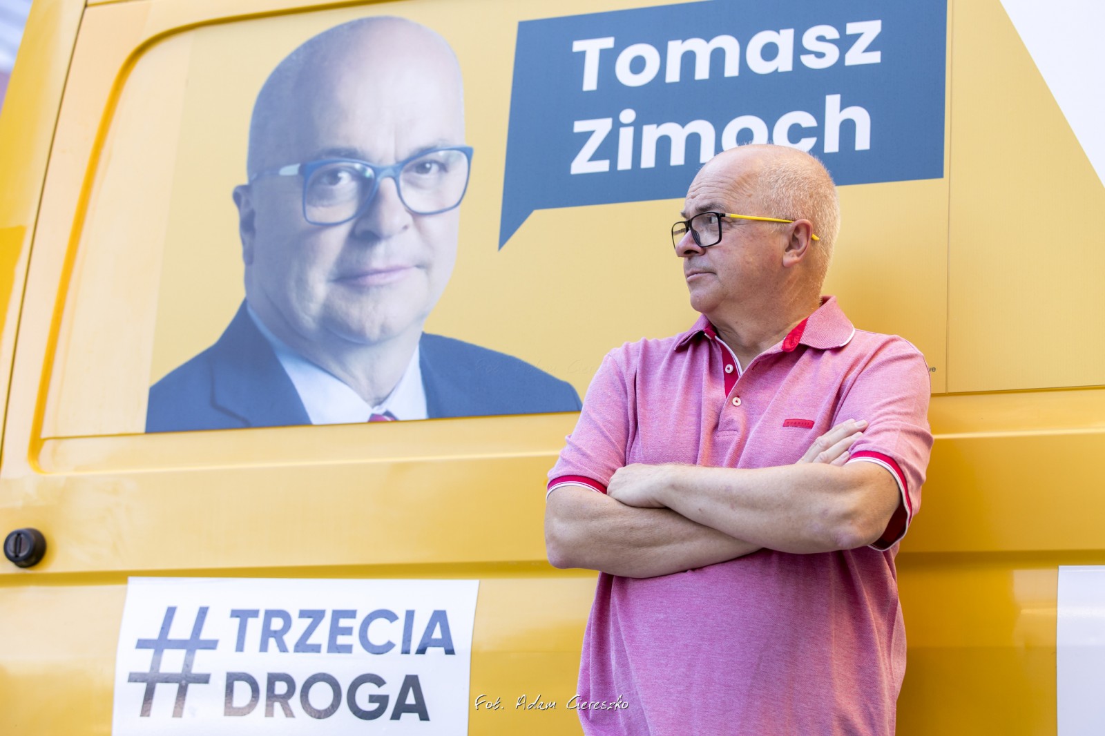 Plenerowa sesja zdjęciowa Tomasza Zimocha, kandydata do sejmu we Wrocławiu z listy koalicji Trzecia Droga.
