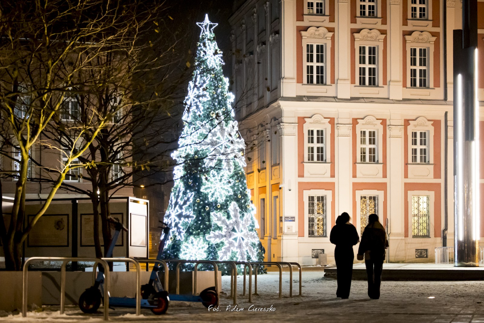 Jarmark bożonarodzeniowy na Placu Wolności, świąteczny tramwaj i iluminacje na ulicach Poznania