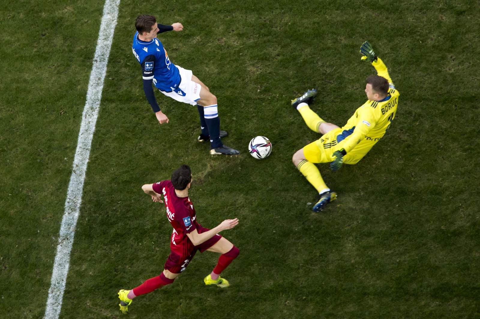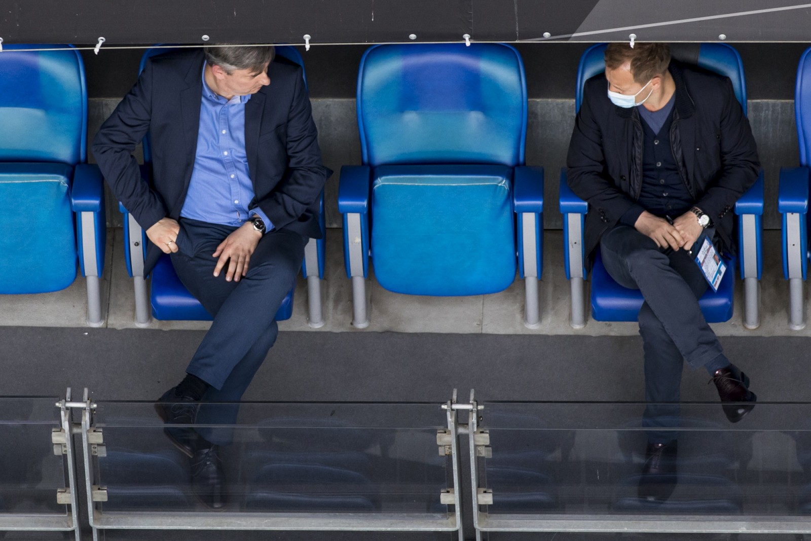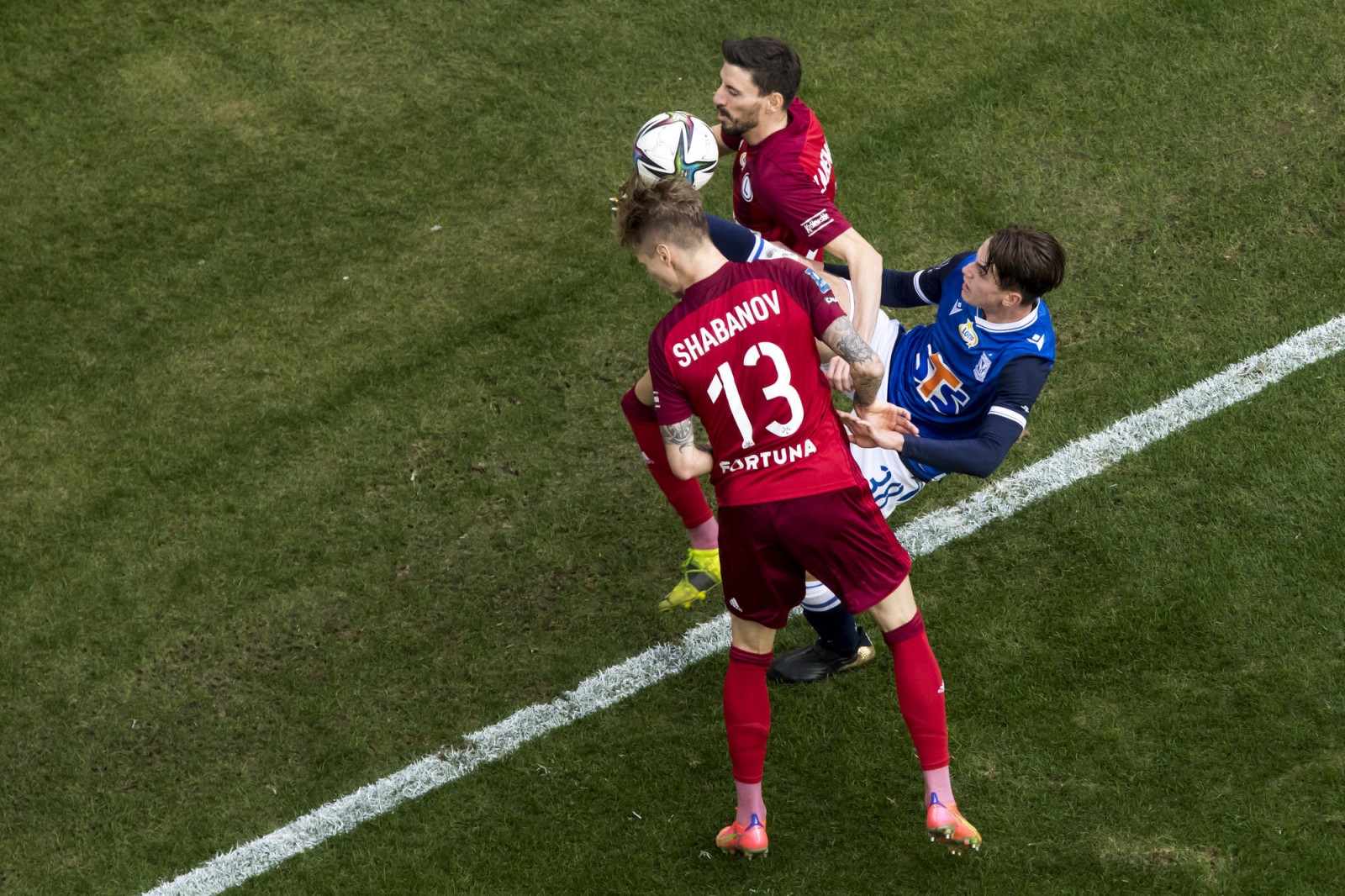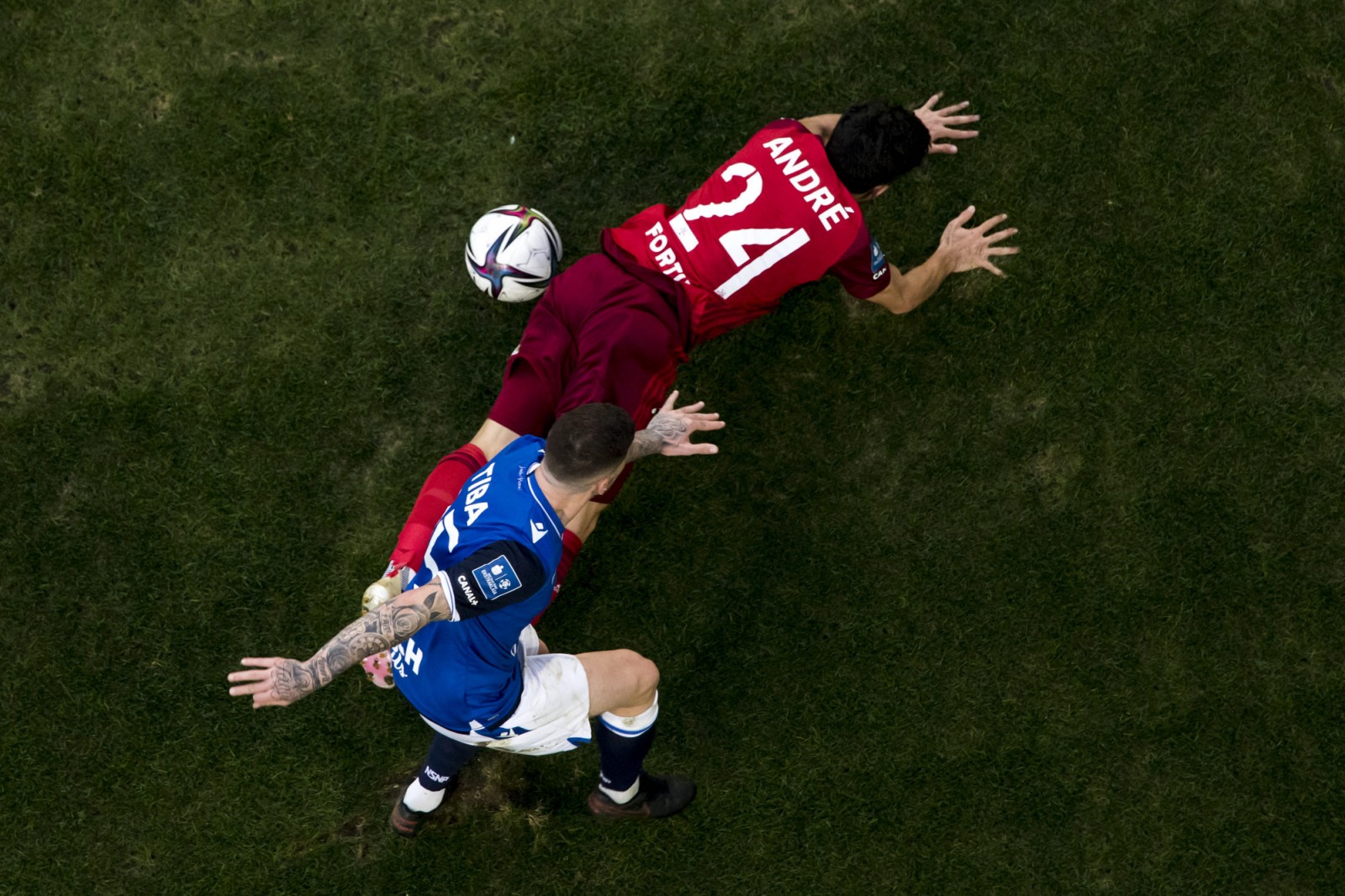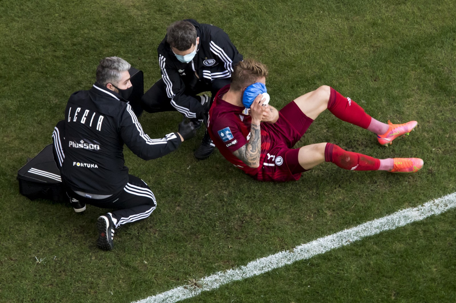 Mecz piłkarskiej ekstraklasy Lech Poznań - Legia Warszawa fotografowany z dachu stadionu