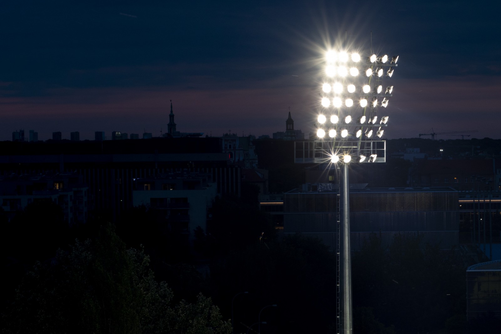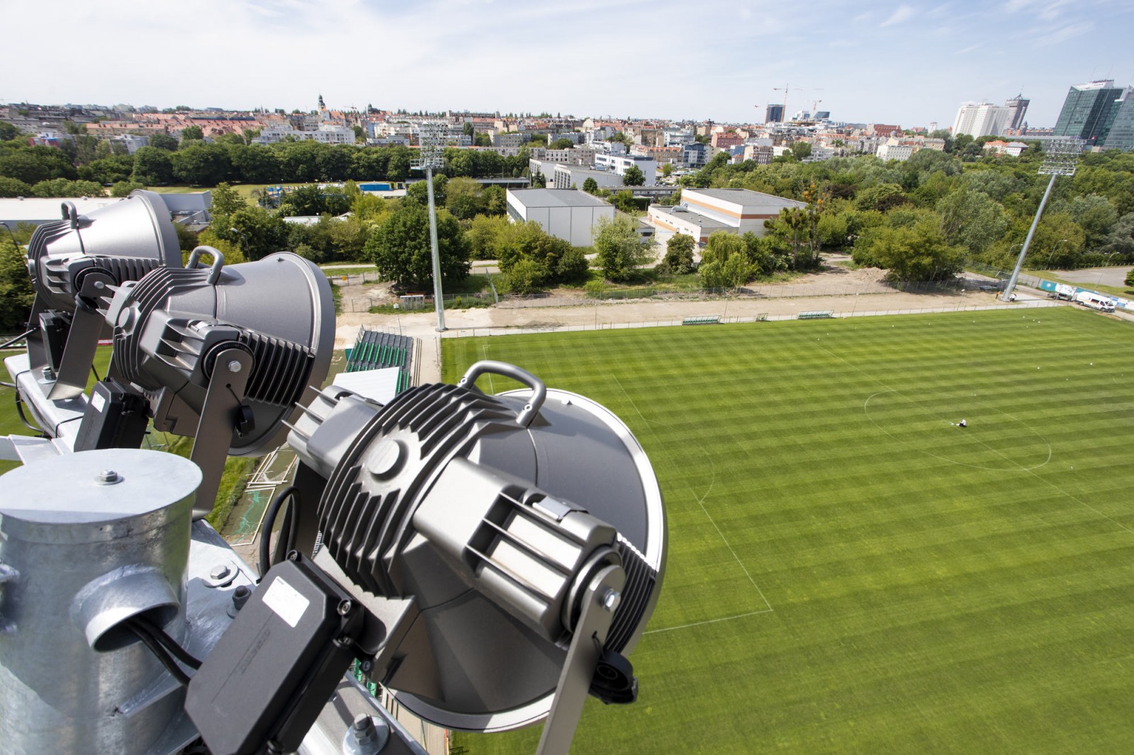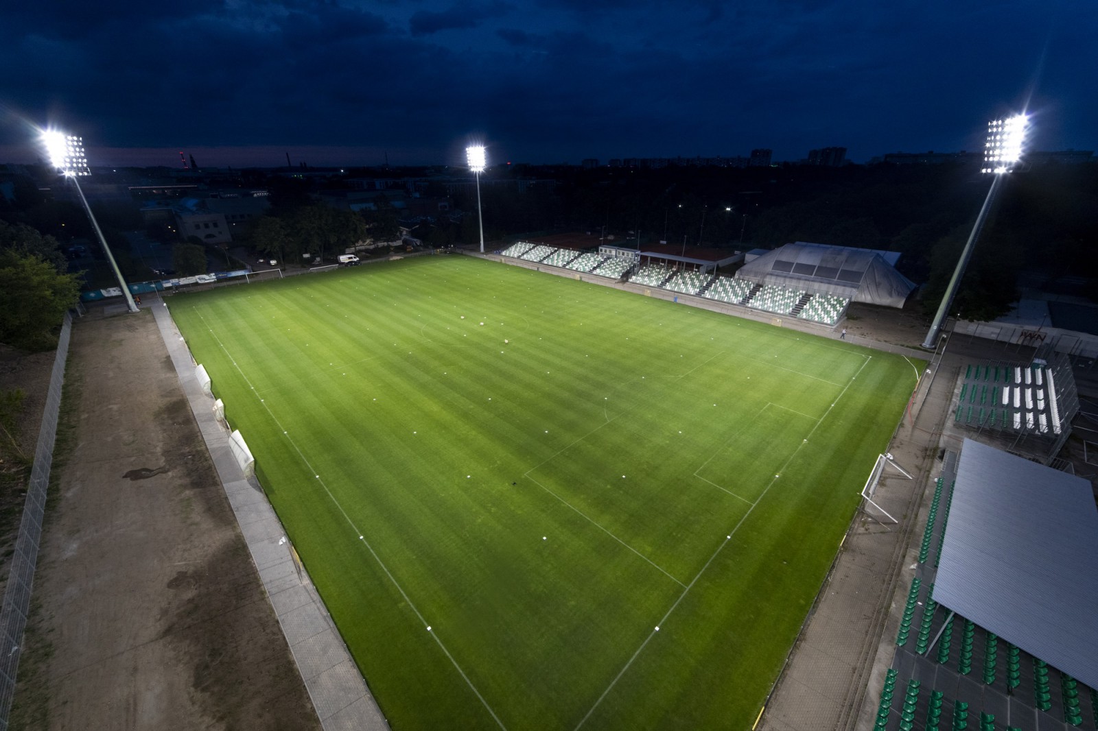 Uruchomienie jupiterów w popularnym 'Ogródku' czyli na modernizowanym stadionie przy ul. Droga Dębińska.