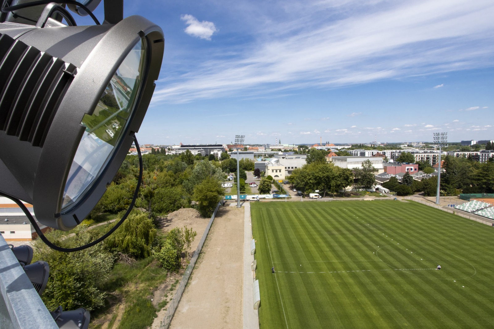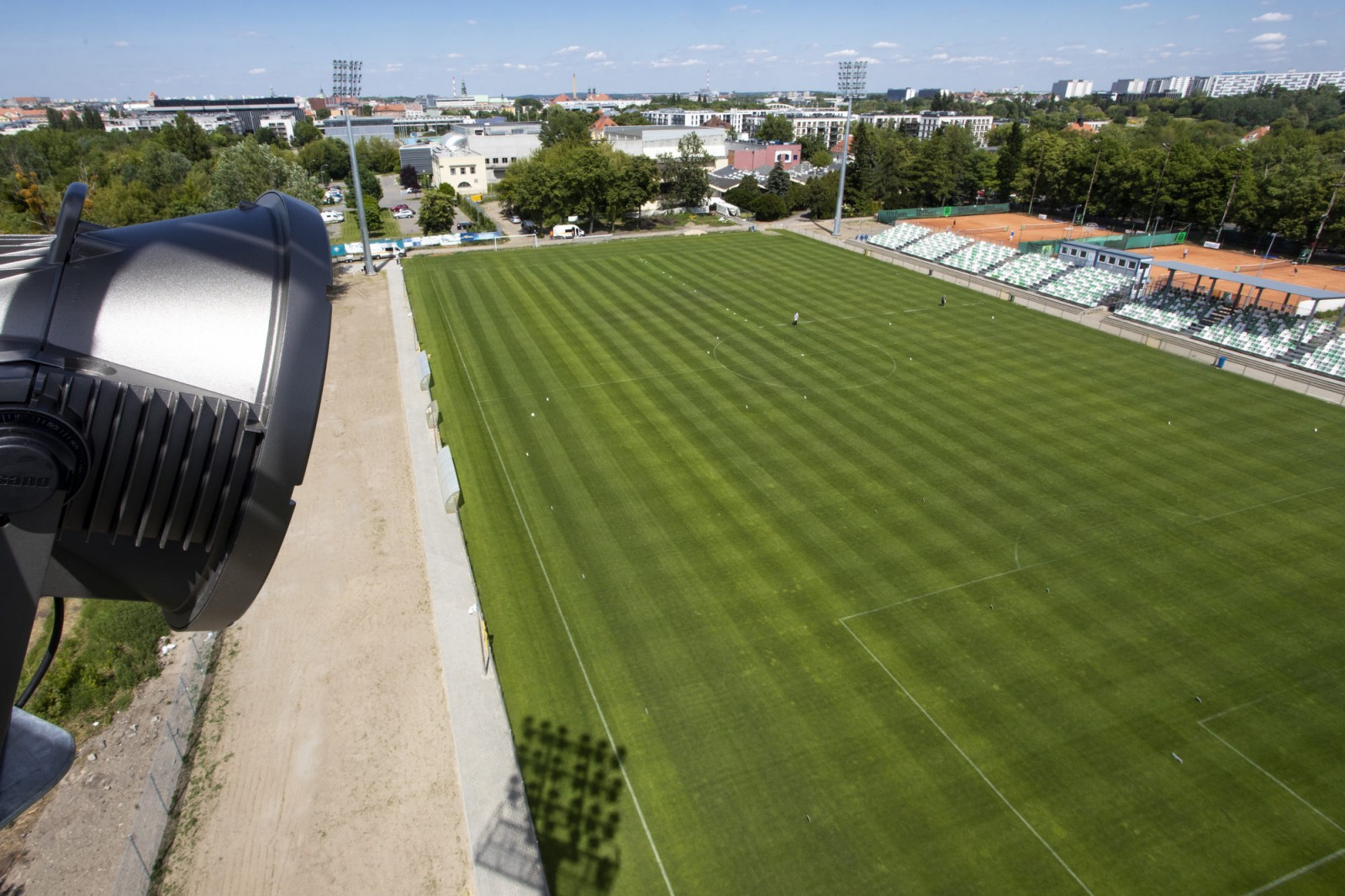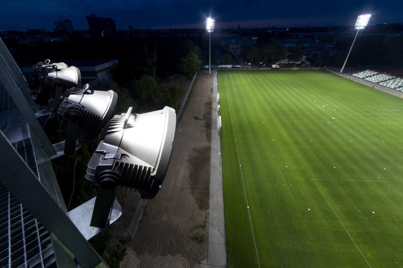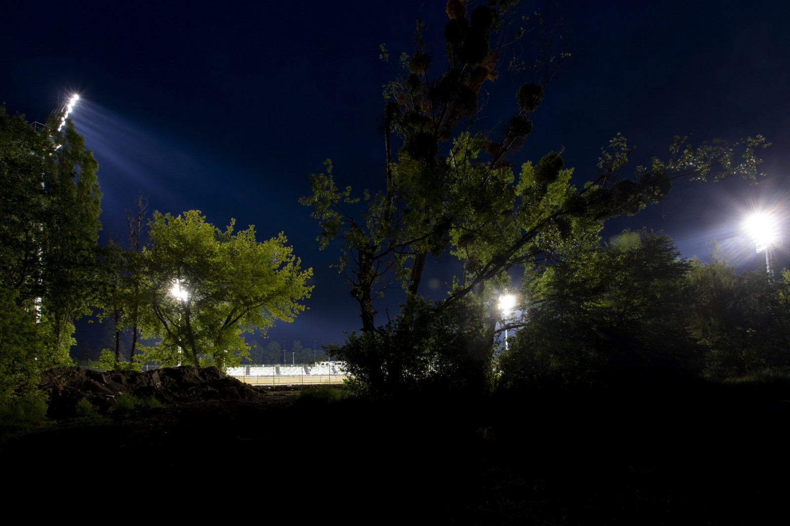 Uruchomienie jupiterów w popularnym 'Ogródku' czyli na modernizowanym stadionie przy ul. Droga Dębińska.